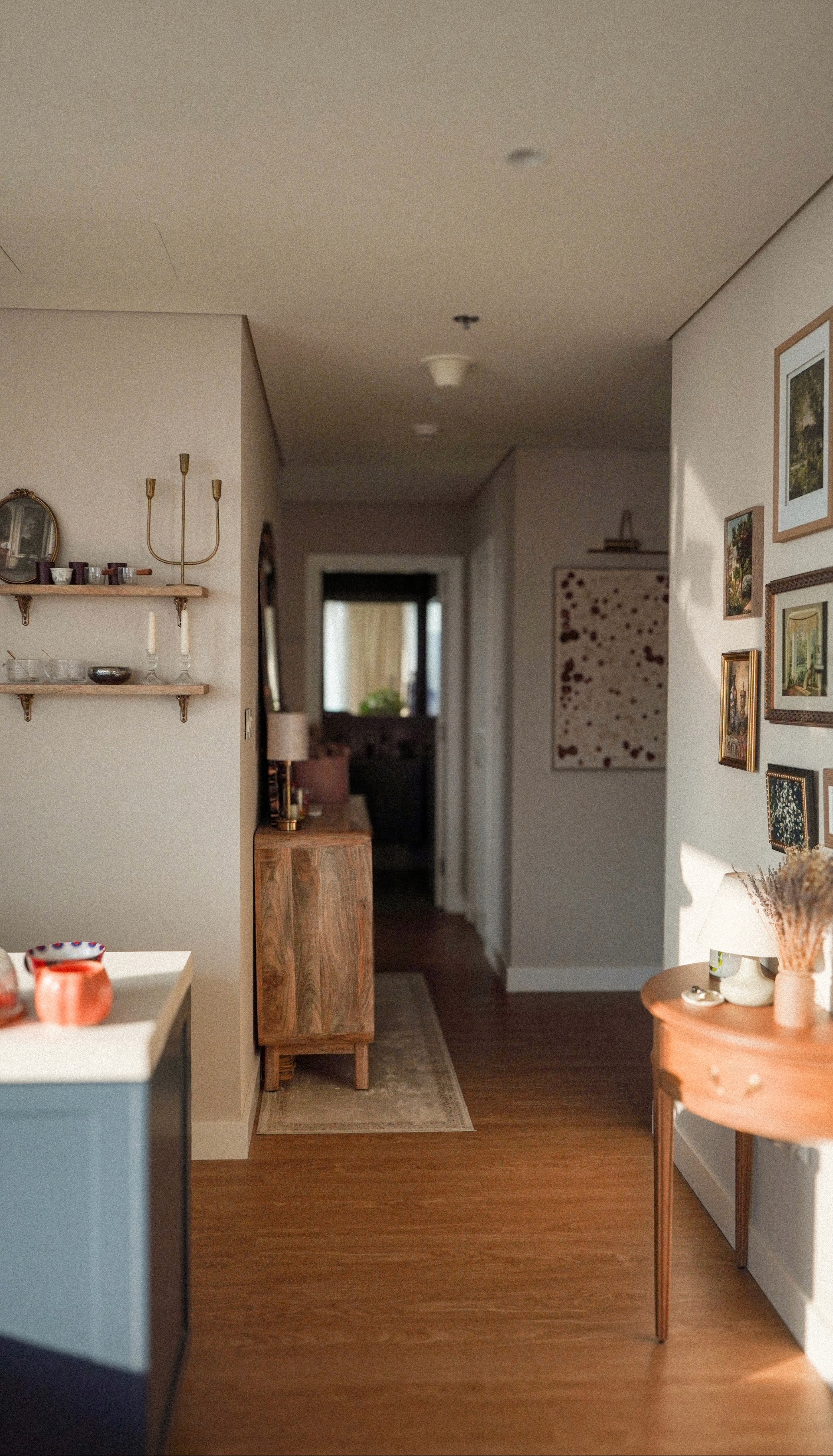 Hallways are those 'spaces in between' that you pass through all the time, yet they often get zero design love. So I made sure ours do.