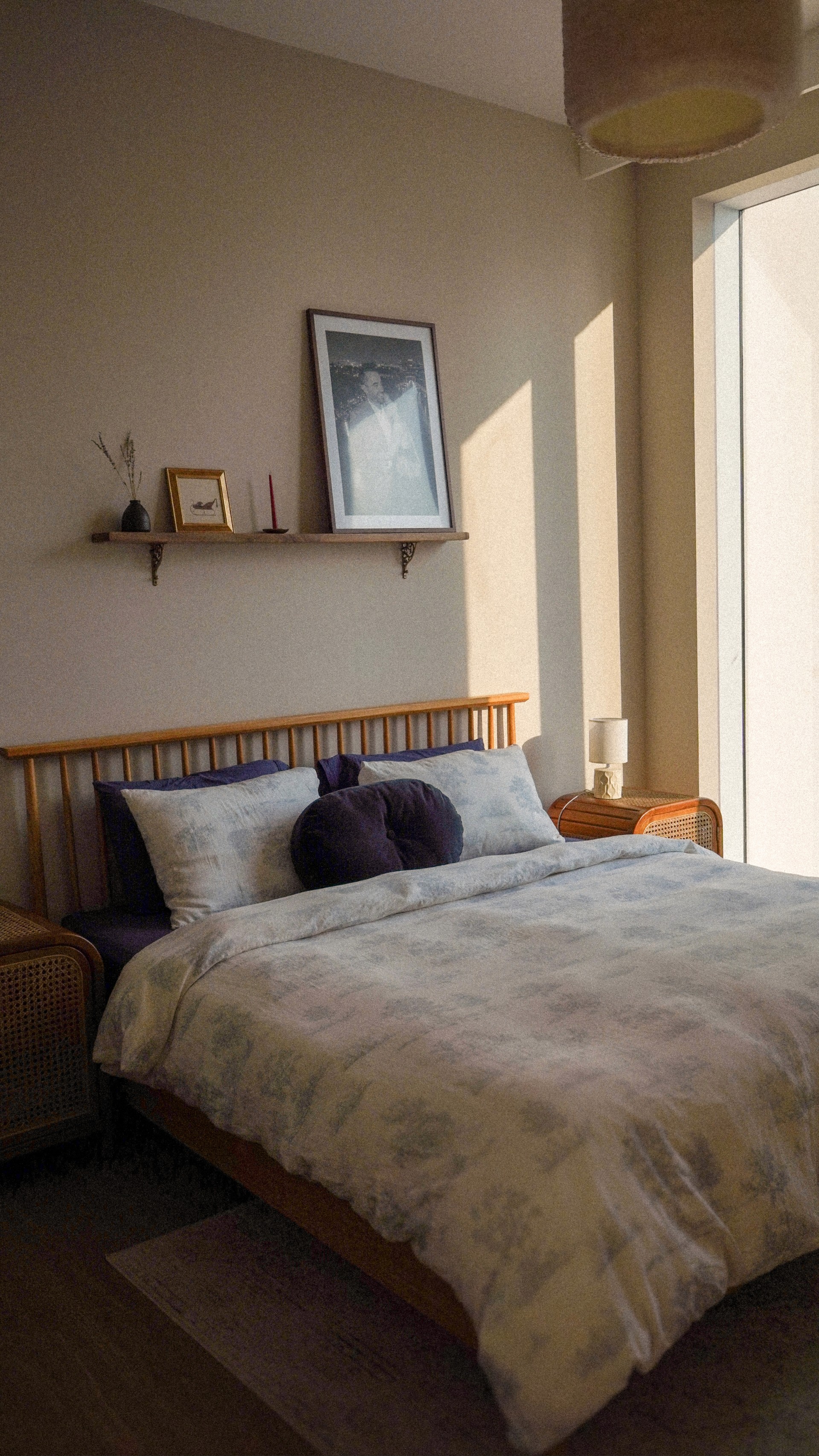 I kept it simple and focused on comfort. We’ve got our all-time favorite mattress, super soft bedding, and lighting on dimmers
